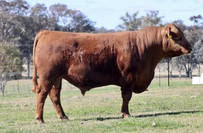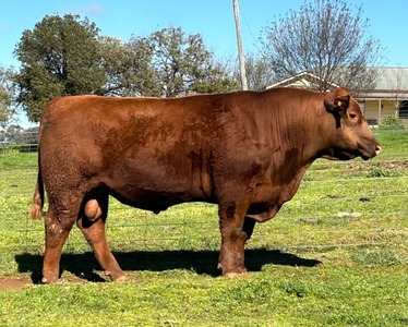 A/C: ALLAN & LUCIE BROWN Herd Ident: ALBT7 Born: 14/12/2022 Age: 21 Months SIRE: RED WHEEL STARK 67G (AMF)(MAF)(NHF)(OSF) CANM2104790 DAM: GREENWOOD PARK 111 DINA Q09 (AI) (ET) GWPQ09 Comments: Taj T7 is a deep sided, thick set and correct young bull showing all the attributes of his sire Red Wheel Stark, combining with the influence of the great Dina K33 cow line. This young bull will improve any herd. His EBV’s put him in the top 25% of the breed for 200 day weight while maintaining breed average Birthweight. Maternal sister sells as Lot 30. SNP Profiled and Parent verified. Vaccinations: Tick fever, 7in1, 3 day sickness |