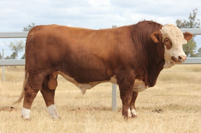 POLLED SCURED ID YSC1T071 SIM RG EYE PIGMENT 100/100 Sire: CASA TORO Q036 Dam: BILLA PARK GISELE Q103 Tradie is a long, well-made son of Q36 that oozes softness. His mother is a full sibling to Maximum Impact, who was sold to Lucrana Simmentals for $26,000. Tradie has a casual soul and is such a pleasure to be around. We have discussed on more than one occasion whether we should be retaining him for stud duties, but here he his offered for the industry’s benefit. |